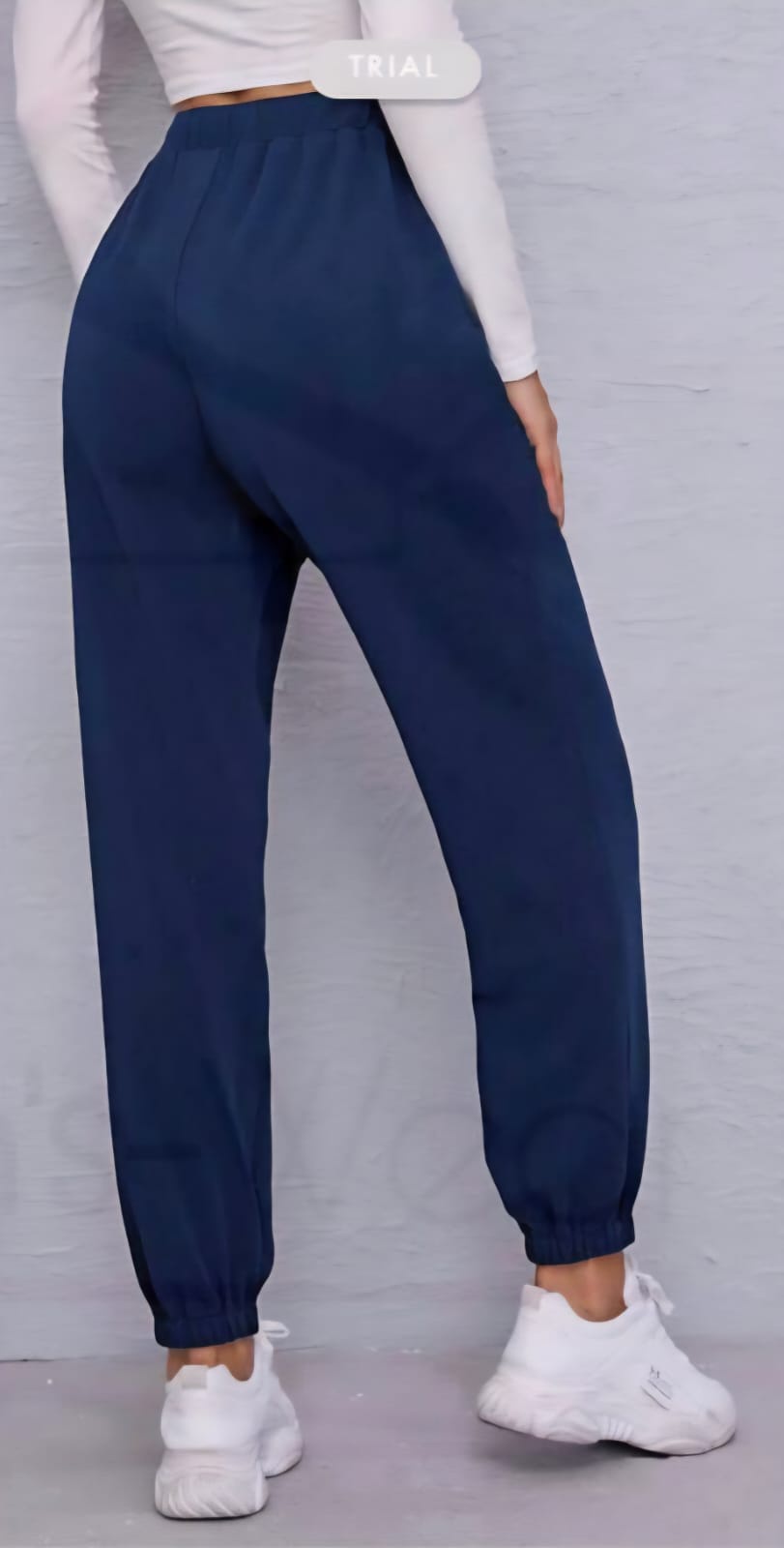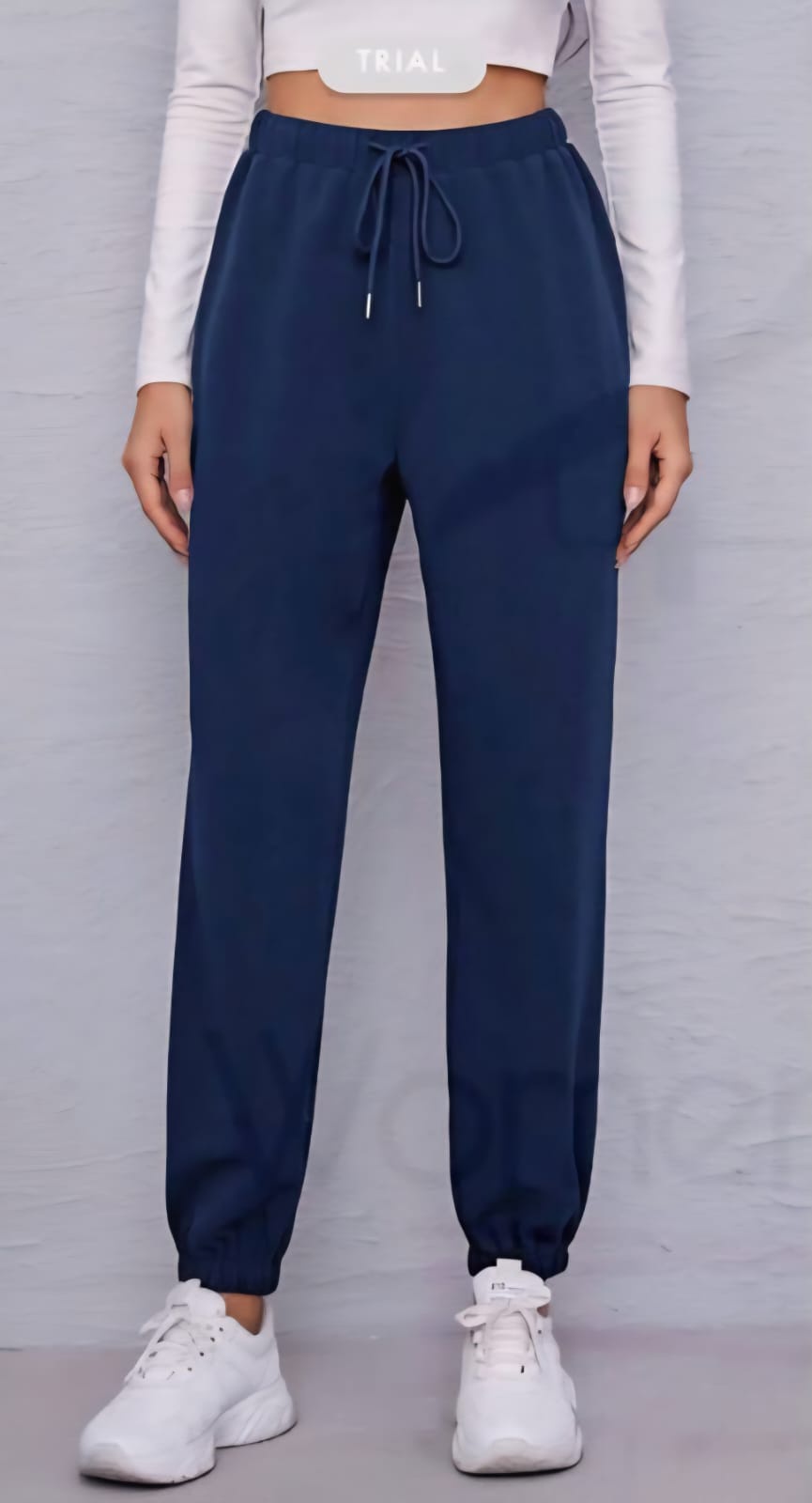 Chic navy blue womenโs sweat pants, perfect for home or casual wear. Crafted from breathable cotton Lycra fabric with flexible fit.